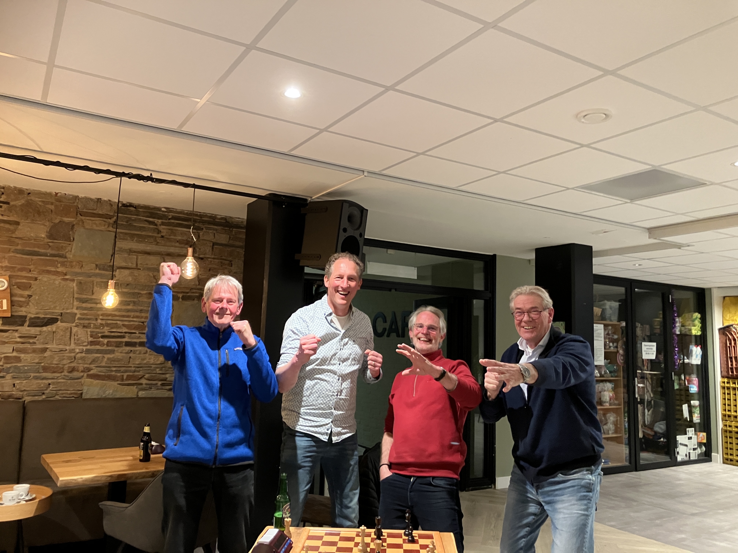 Het eerste team had nog een belangrijke laatste ronde tegen Wolvega 2 voor de boeg. De mannen van Wolvega moesten winnen om degradatie te voorkomen, Bakkeveen moest winnen om kampioen te worden. En dat laatste is gelukt. Johan, Jasper en Tjeerd wisten vrij vlotjes te winnen terwijl Ben zijn tegenstander op remise wist te houden.